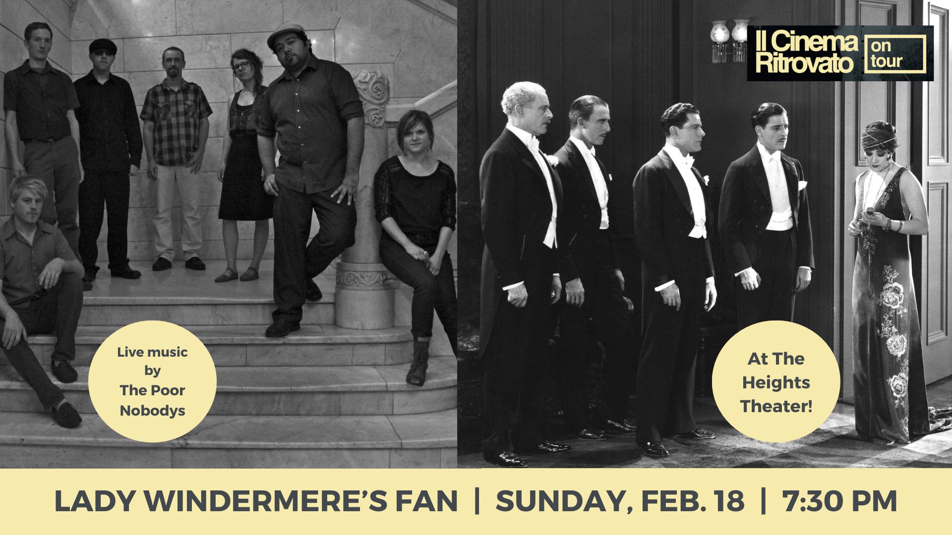 Ernst Lubitsch’s unfaithful adaptation of Oscar Wilde’s 1892 stage play fuses maternal melodrama with lighthearted irony. Lubitsch parlays the wit of Wilde’s words into glorious visual textures. Live musical accompaniment for this screening was provided by local, seven-piece band, The Poor Nobodys. Introduction by Maggie Hennefeld