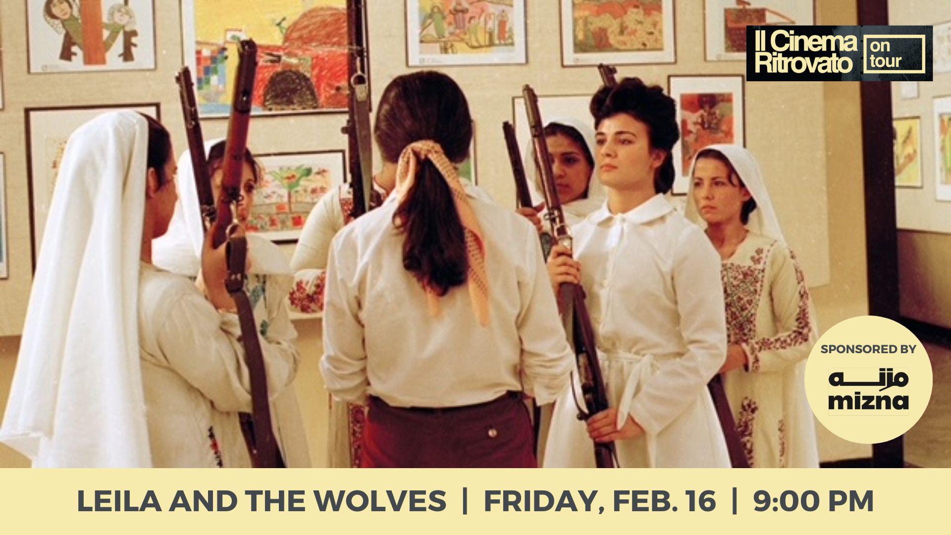 Leila and the Wolves (Layla wa zi’ab) centers women’s roles in the fight for Arab liberation. In the film, Leila travels through time, from the British Mandate of Palestine to the Israeli invasion of Lebanon in 1982, weaving together memory and myth. Leila and the Wolves is a piece of anti-colonial cinema and feminist historiography. The film was acclaimed by critics for its originality and use of archival footage. Introduction by Michelle Baroody